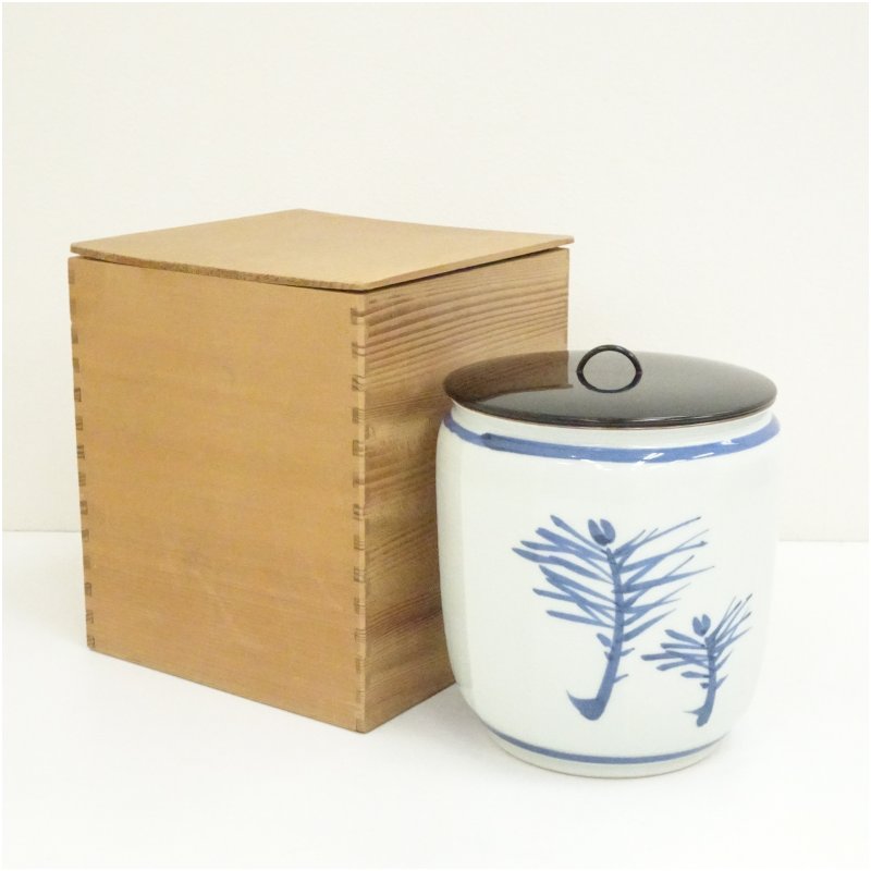 京焼 押小路窯造 染付若松水指(保護箱) [09-251118e-036a]