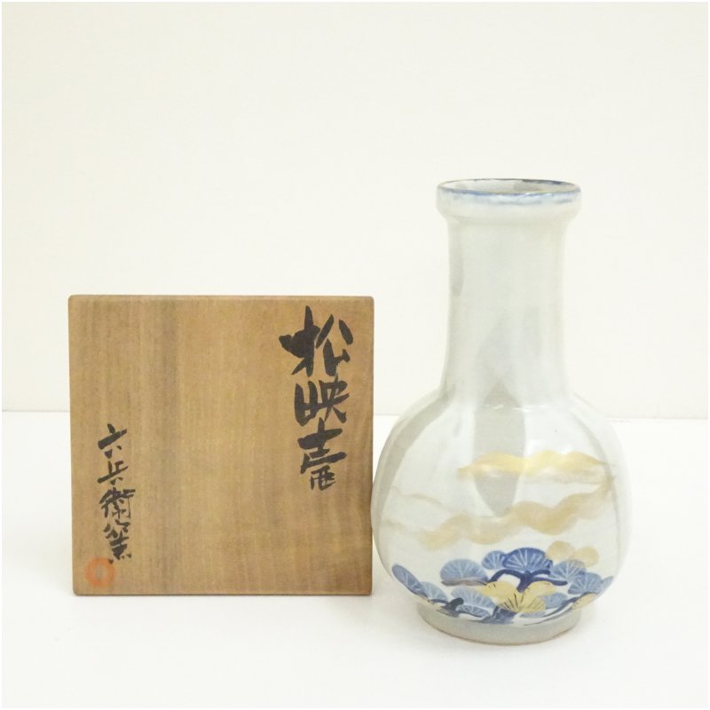 六兵衛窯造 松映壷(共箱) [09-251118e-044a]