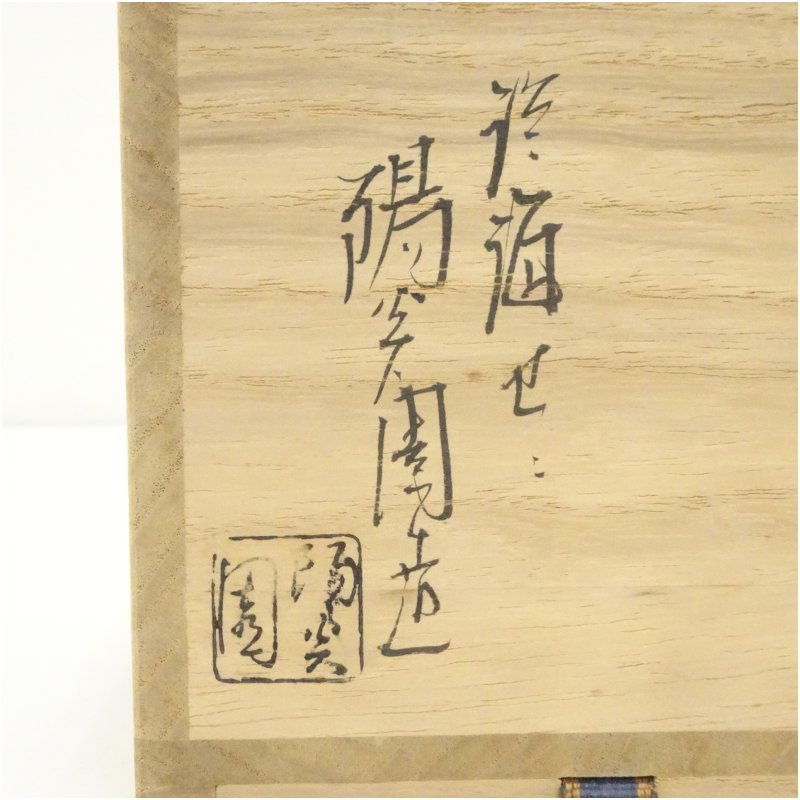 膳所焼 岩崎新定造 灰釉染付茶碗(共箱)