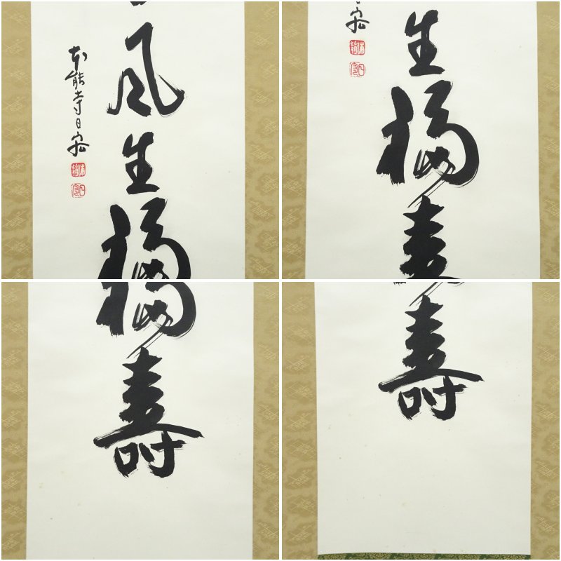 本能寺 松井日宏筆 「春風生福寿」一行書 肉筆紙本掛軸(紙箱) [01-251119c-003a]