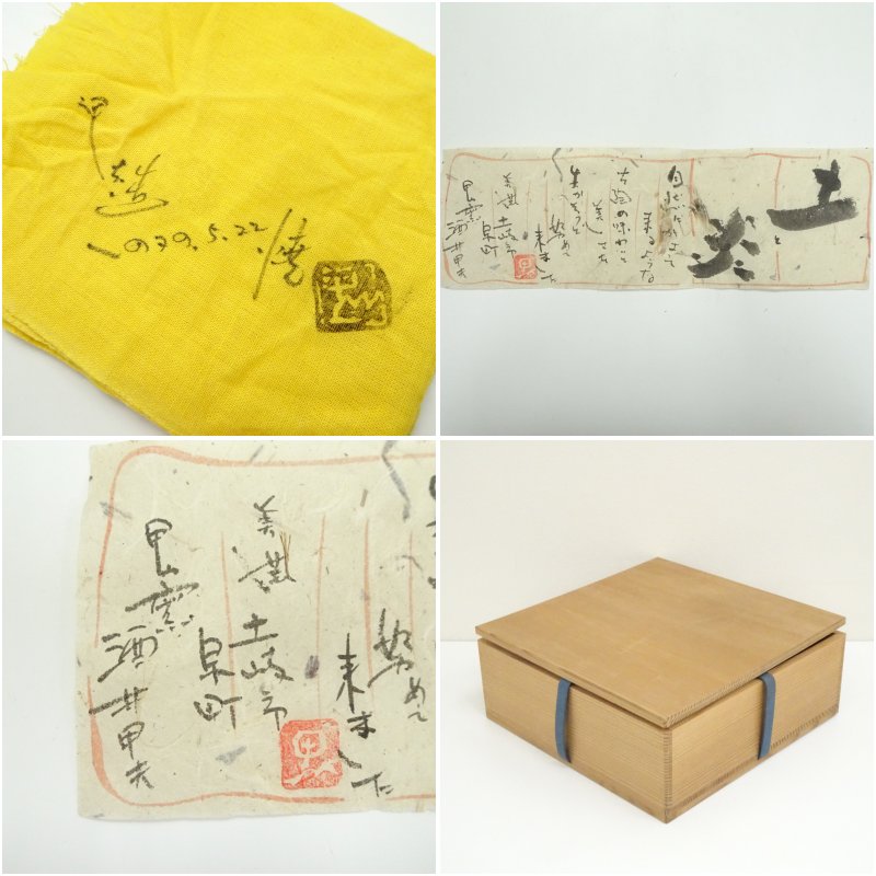 甲山窯 酒井甲夫造 鼠志野鉢(共箱)