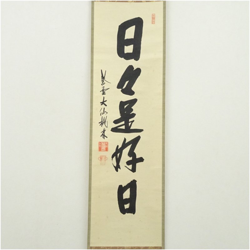 大徳寺 尾関桃林筆 「日々是好日」一行書 肉筆紙本掛軸(保護箱)