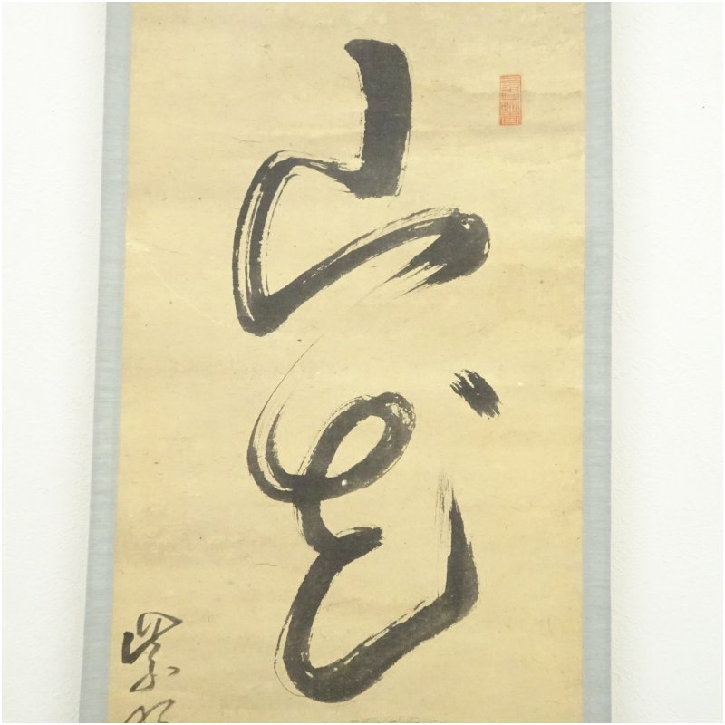 大徳寺 太田晦巌筆 「山花開似錦」一行書 肉筆紙本掛軸(保護箱)