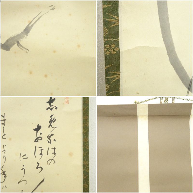表具:風帯に薄いシミがあります。裏面上部を中心に濃いシミが多くあり、その他全体にシミがあります。