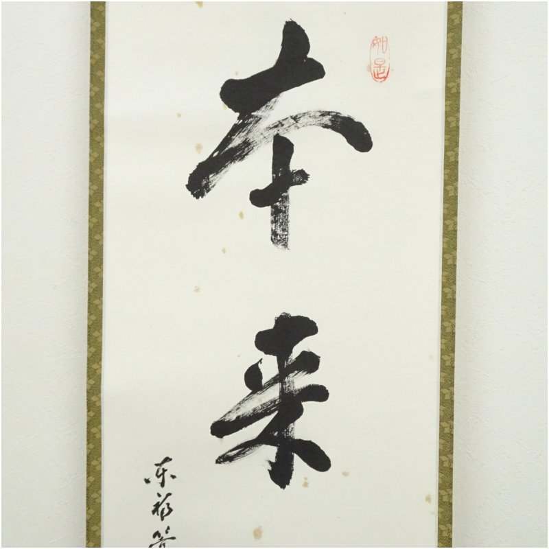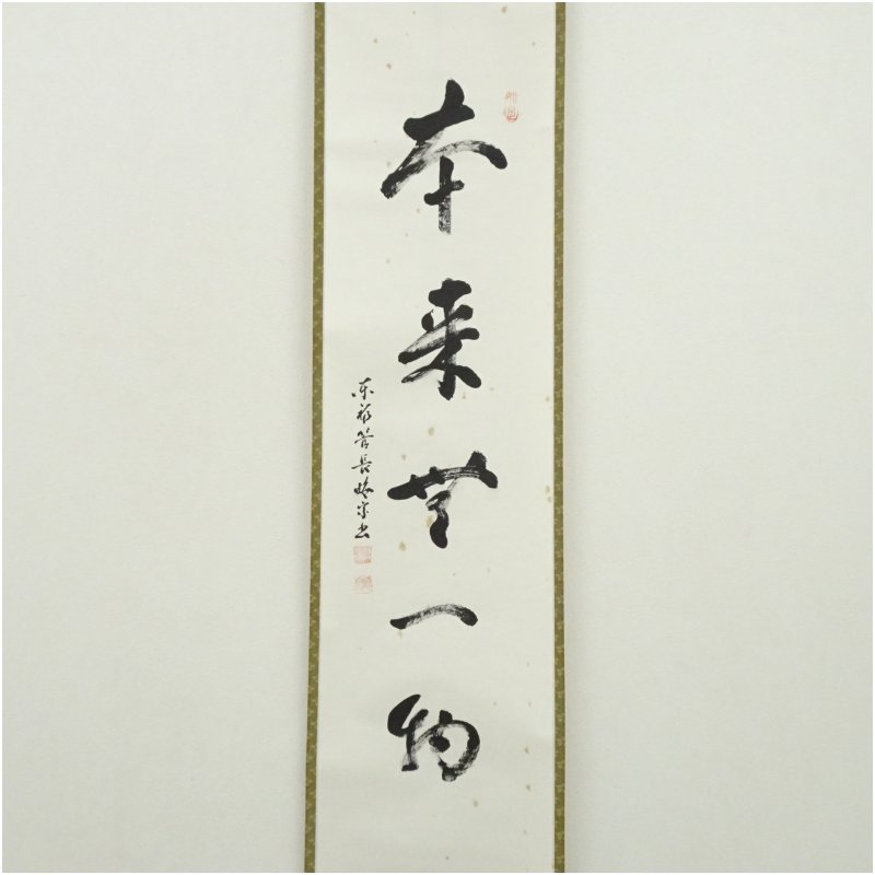 東福寺 林恵鏡(晦宗)筆 「本来無一物」一行書 肉筆紙本掛軸(共箱)