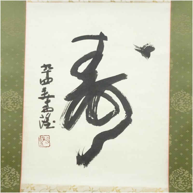 北村西望筆 「寿」一字 肉筆紙本掛軸(保護箱) [09-251119c-036a]
