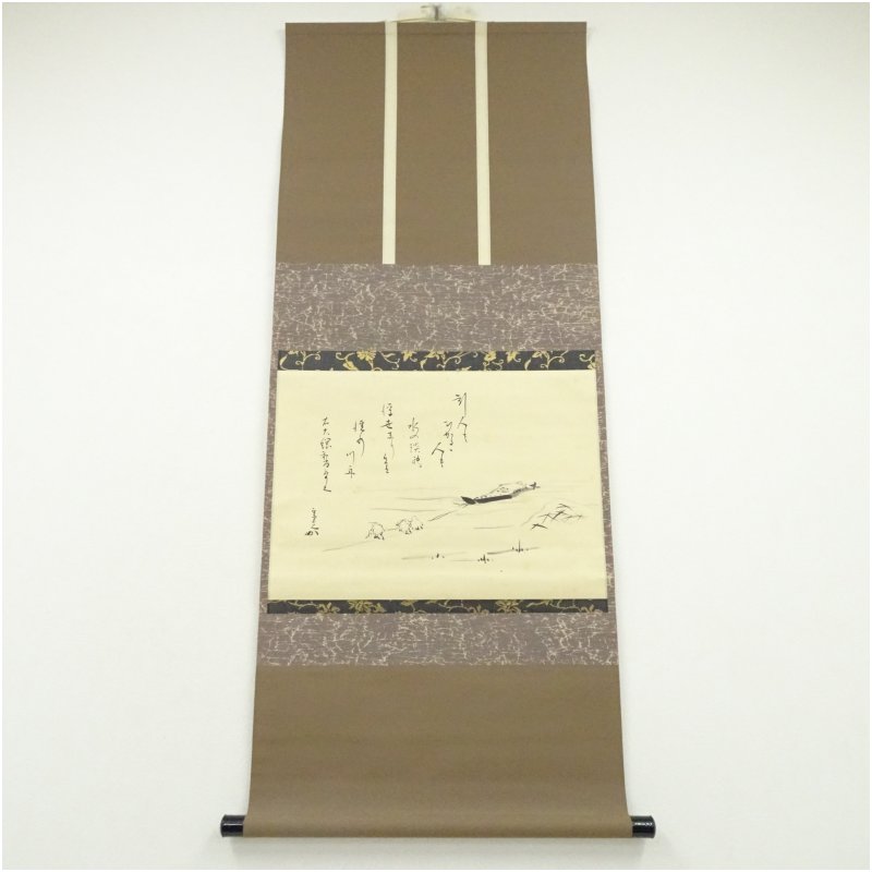 堀内家十二代 宗完 兼中斎筆 短歌 横物 肉筆紙本掛軸 [09-251119c-050a]