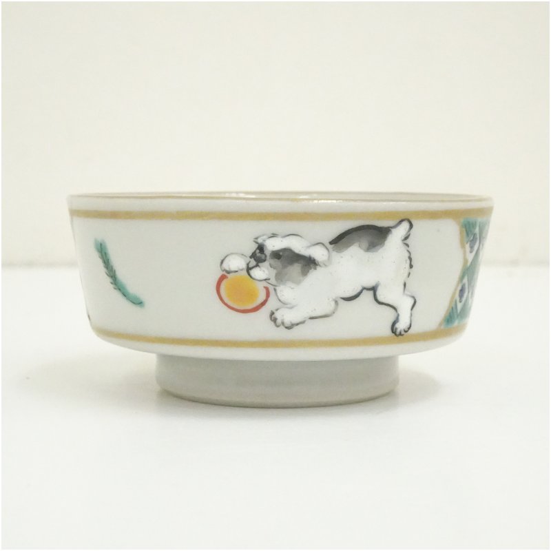 九谷焼 田村敬星造 毛細細字戌絵盃(共箱) [13-250617c-024a]