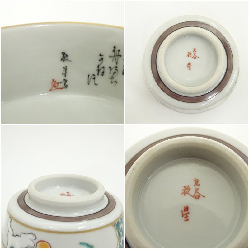 九谷焼 田村敬星造 毛細細字戌絵盃(共箱)
