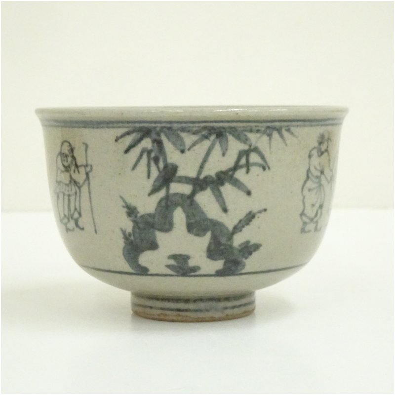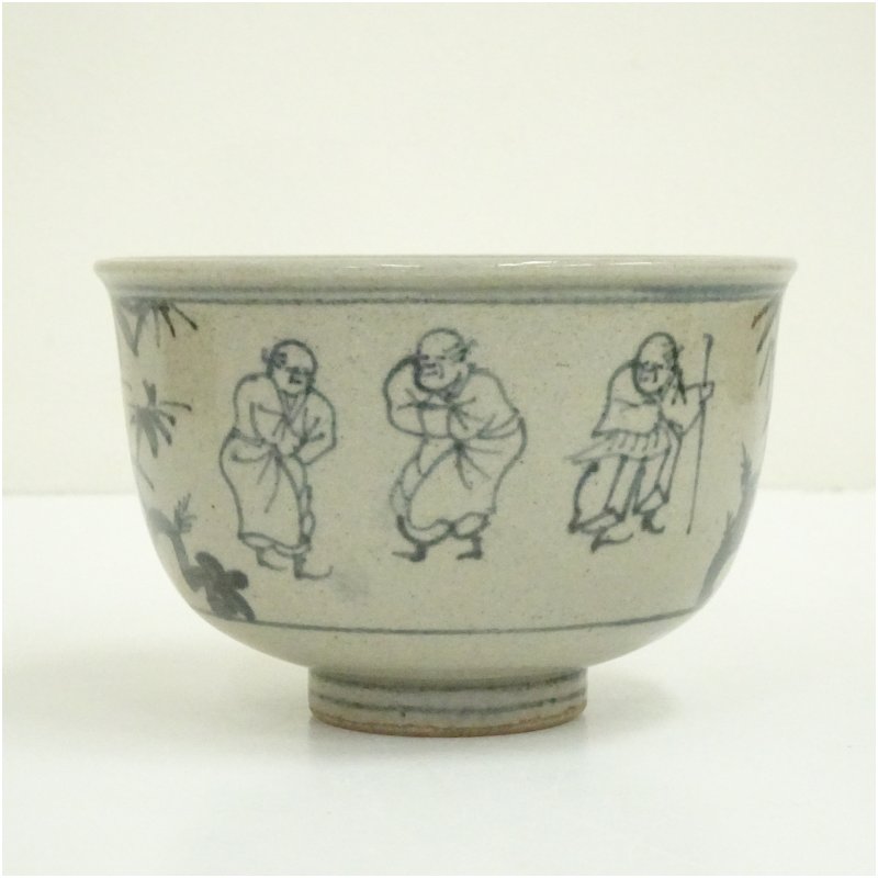 膳所焼 岩崎新定造 安南写七賢人絵茶碗(共箱) [09-251120d-063a]