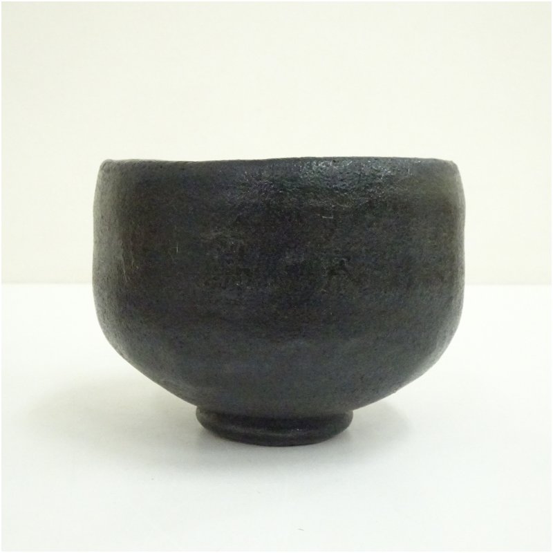 作家物 黒楽文字茶碗(共箱) [09-251120d-079a]