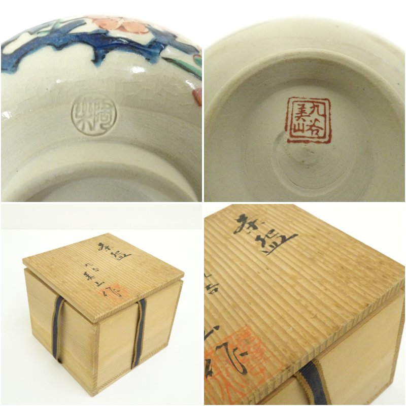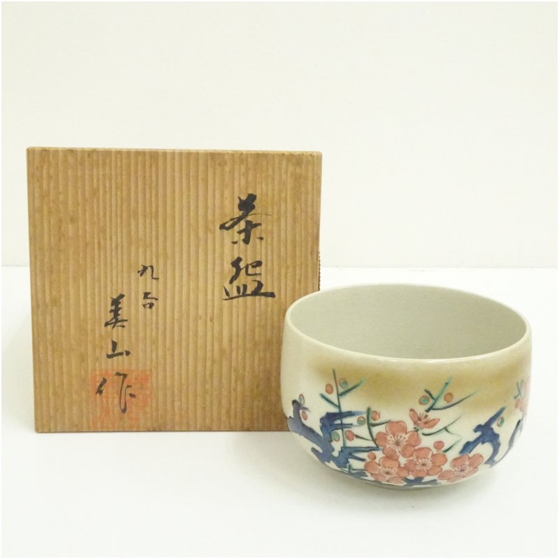 九谷焼 美山造 色絵梅茶碗(共箱)