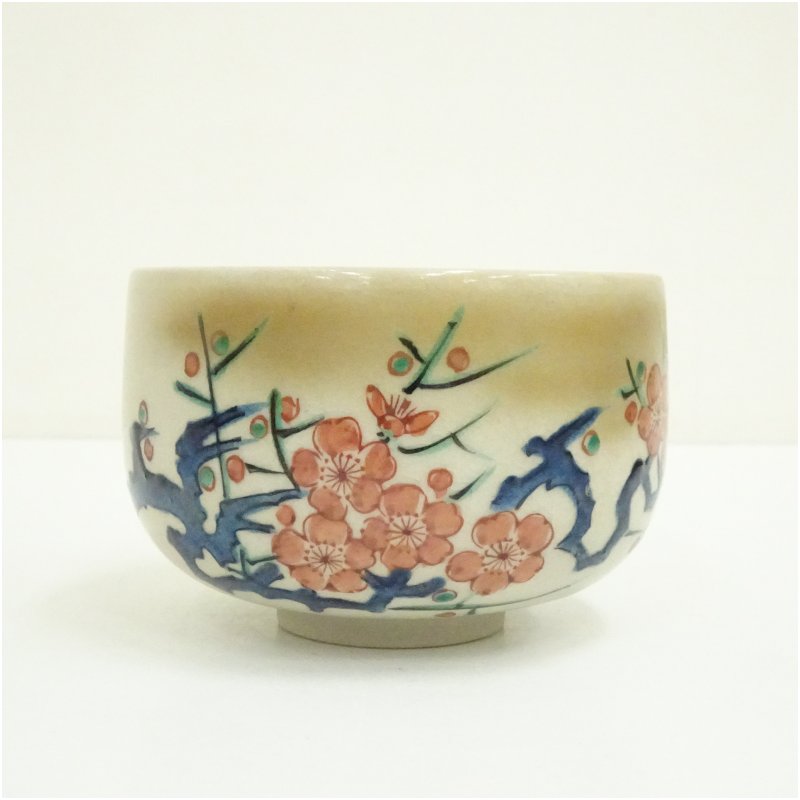 九谷焼 美山造 色絵梅茶碗(共箱) [09-251120d-104a]