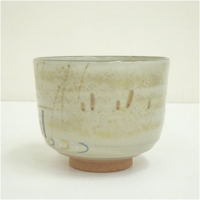 京焼 橋本紫雲造 色絵川霧筒茶碗(共箱) [09-251120d-106a]