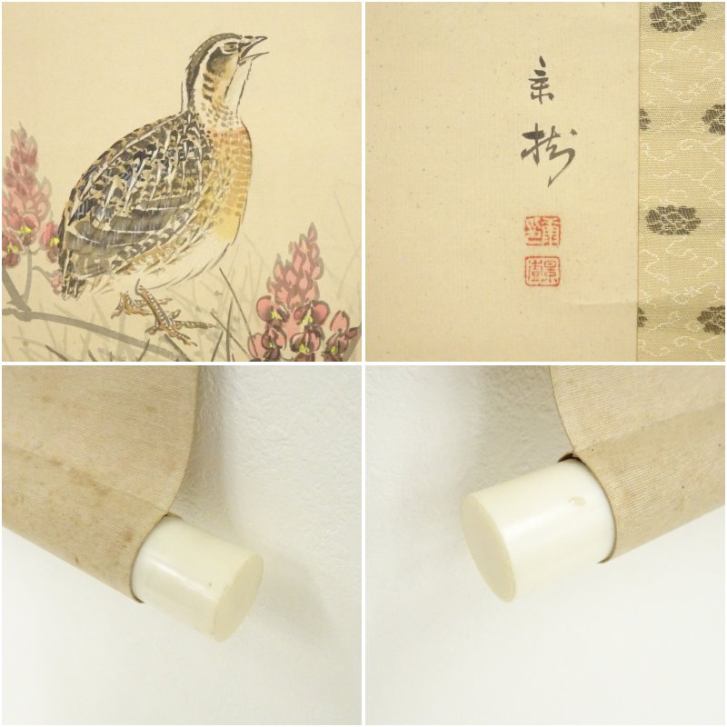 今井景樹筆 秋草と鶉 肉筆絹本掛軸(共箱) [01-251125c-002b]