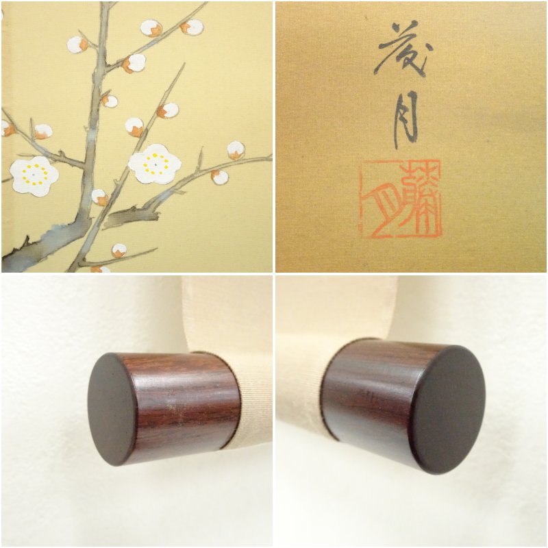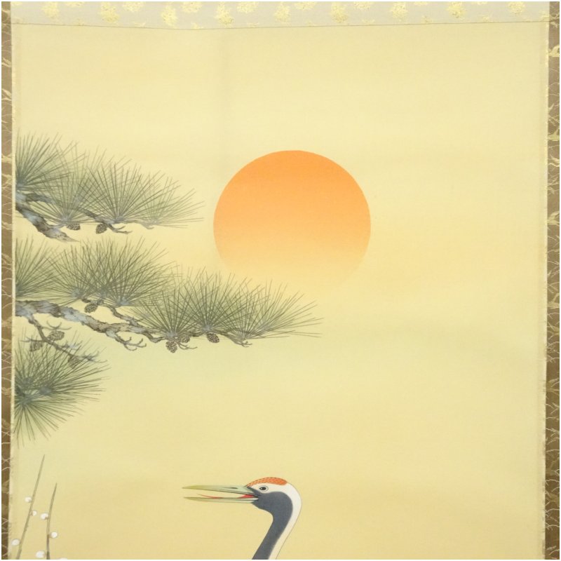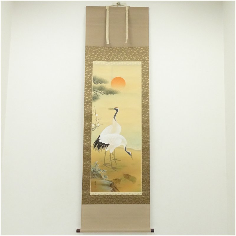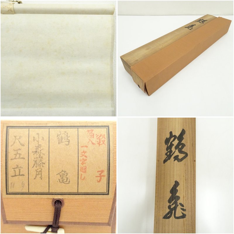 小森藤月筆 松竹梅鶴亀 肉筆絹本掛軸(共箱) [01-251125b-003a]
