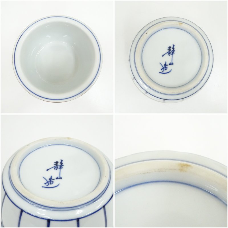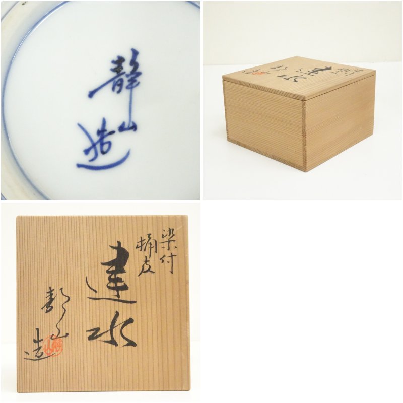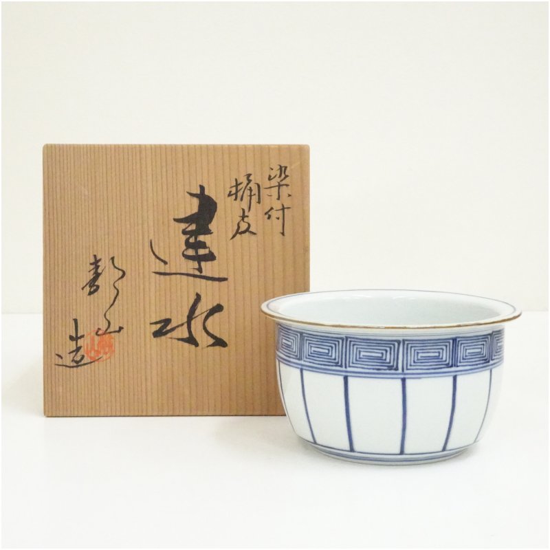 京焼 富田静山造 染付桶側建水(共箱) [13-251125b-020a]