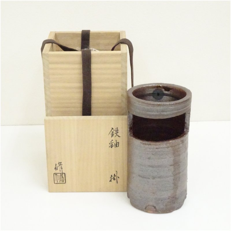 くろかね窯 竹村修造 鉄釉掛花入(共箱)