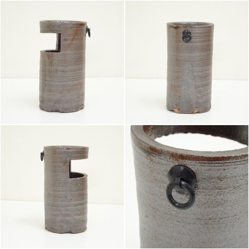 くろかね窯 竹村修造 鉄釉掛花入(共箱) [13-250617c-036a]