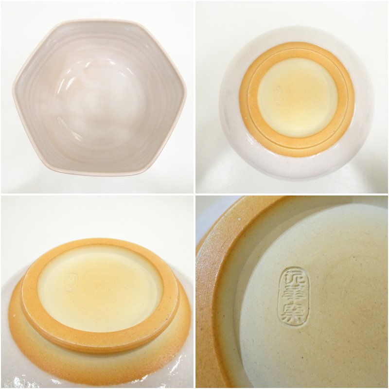 萩焼 泥華窯造 六角鉢(共箱) [13-251125b-029a]