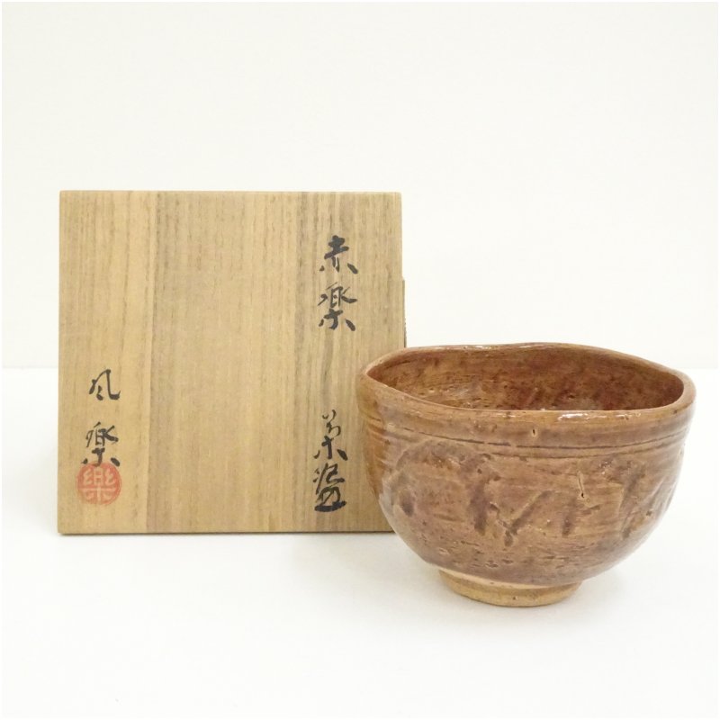凡楽造 赤楽茶碗(共箱) [13-251125b-030a]