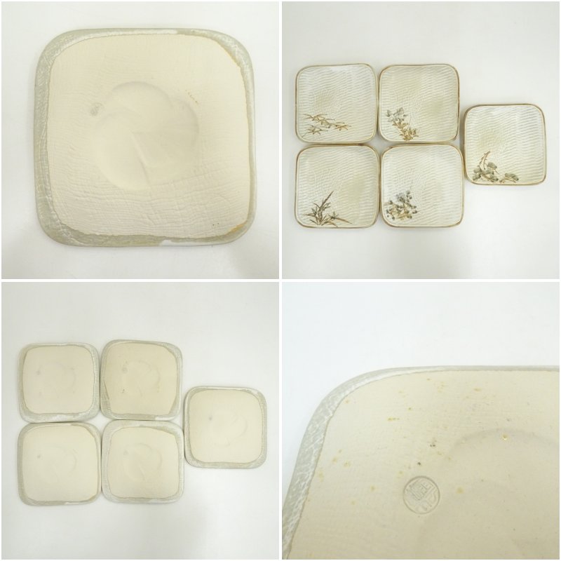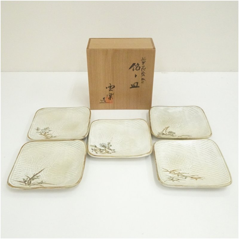 斎藤雲楽造 草花絵替銘々皿客(共箱)