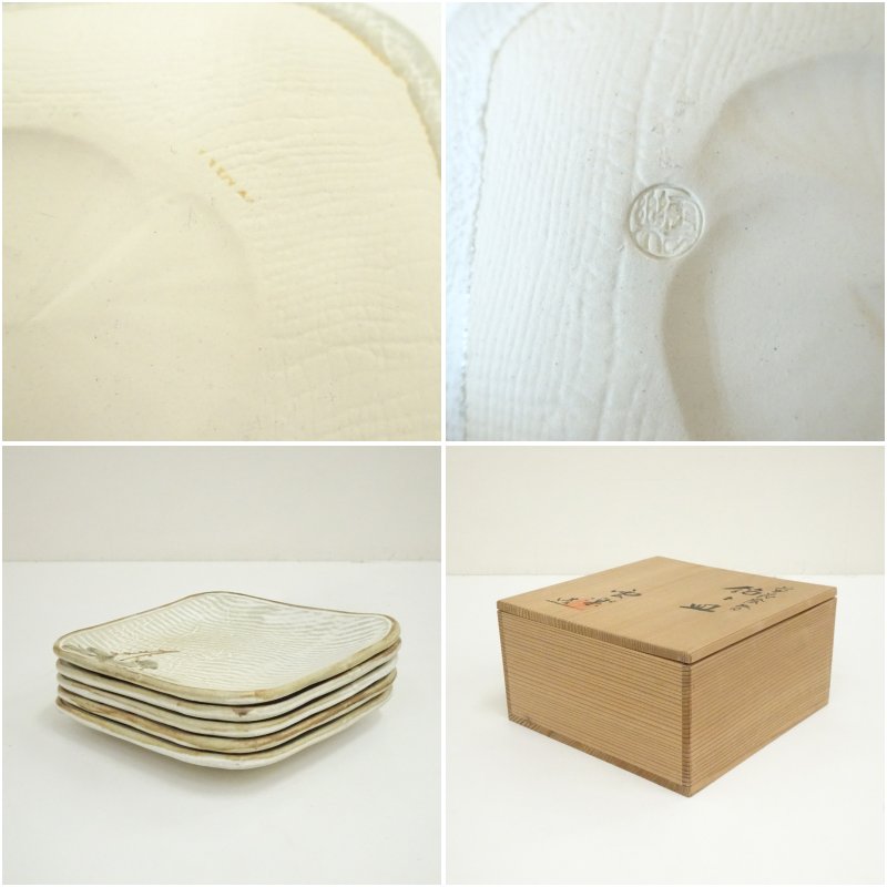 斎藤雲楽造 草花絵替銘々皿客(共箱) [13-251125b-031a]
