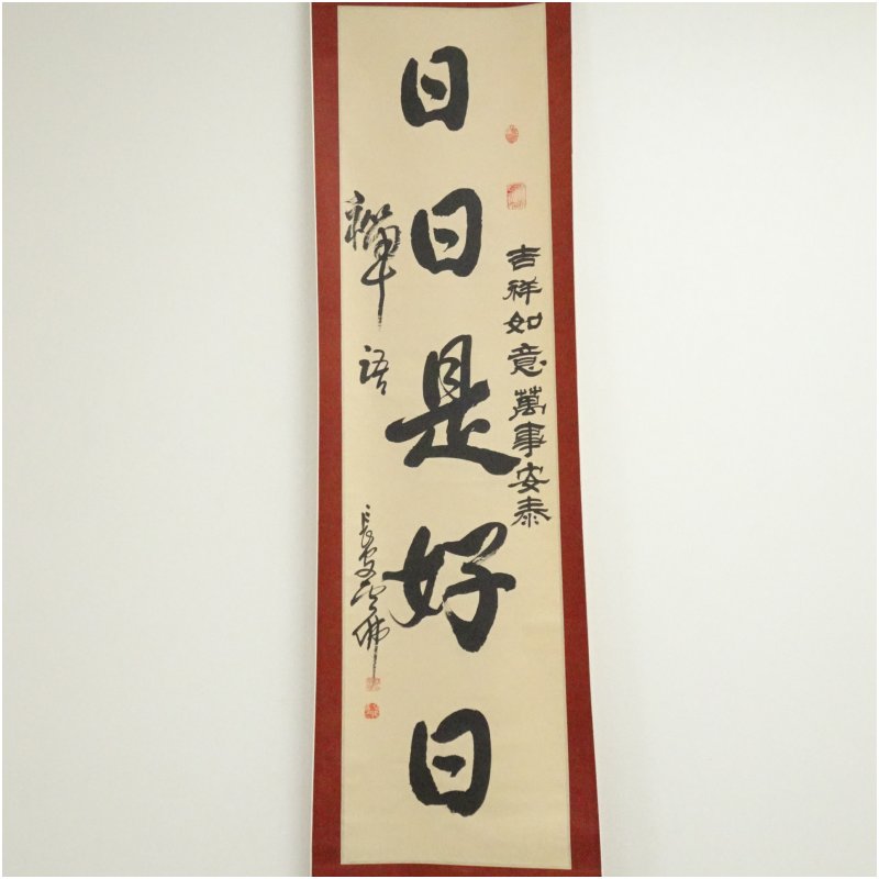 雲佛筆 「日日是好日」一行書 肉筆紙本掛軸(紙箱) [01-251127b-003a]