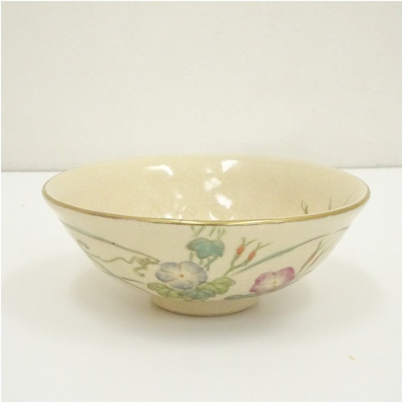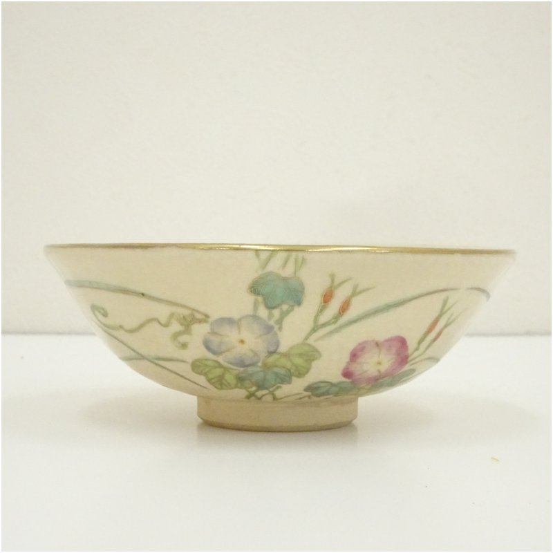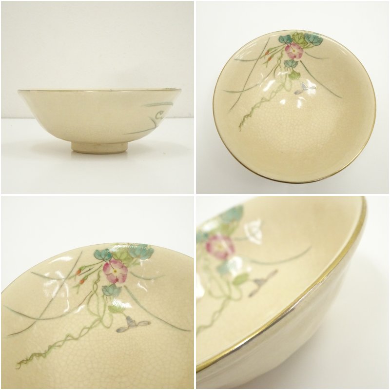 京焼 井上春峰造 色絵朝顔平茶碗(共箱) [13-250519c-017a]