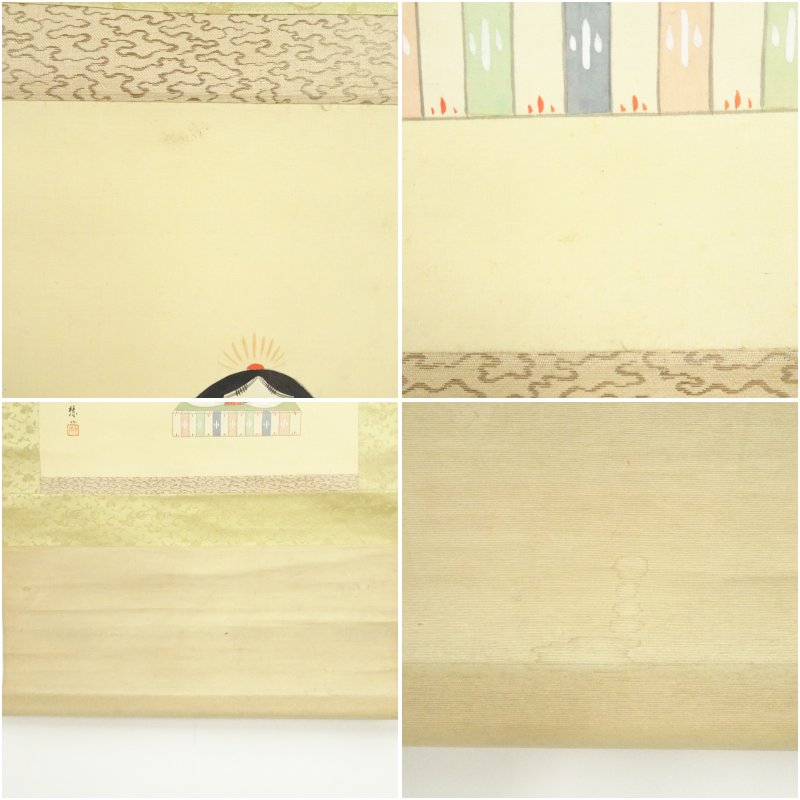表具:表裏全体に経年による汚れ、焼けがあり、巻きジワによる折れがあります。