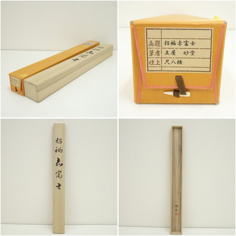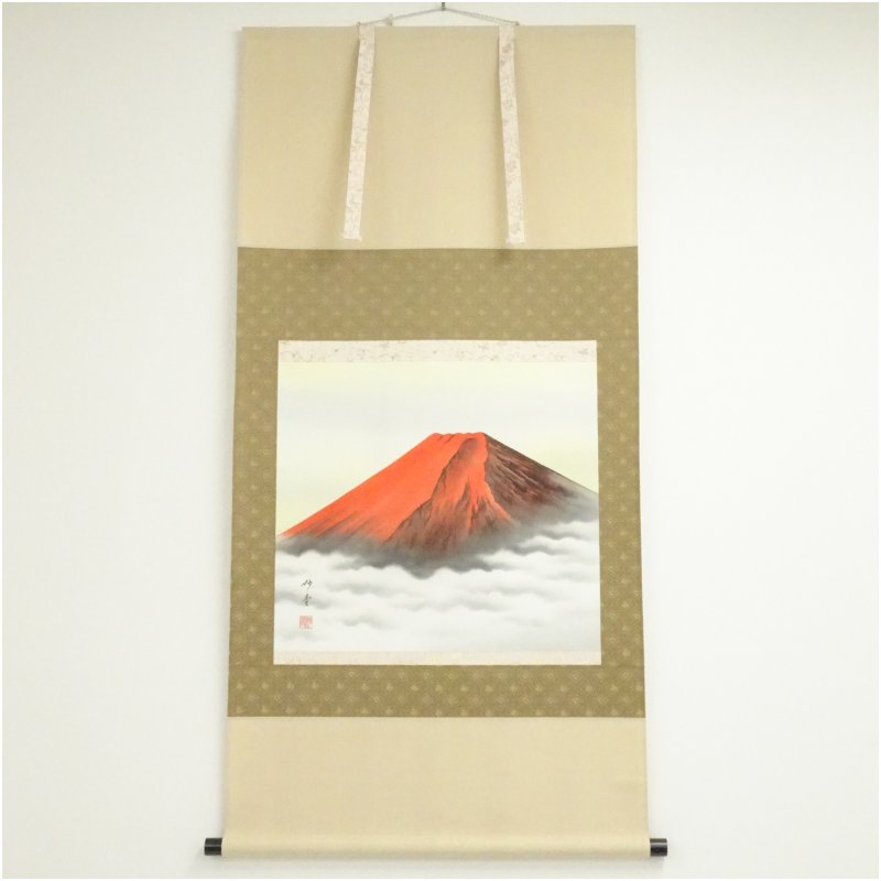 土屋妙堂筆 招福赤富士 肉筆絹本掛軸(共箱) [01-251127b-014a]