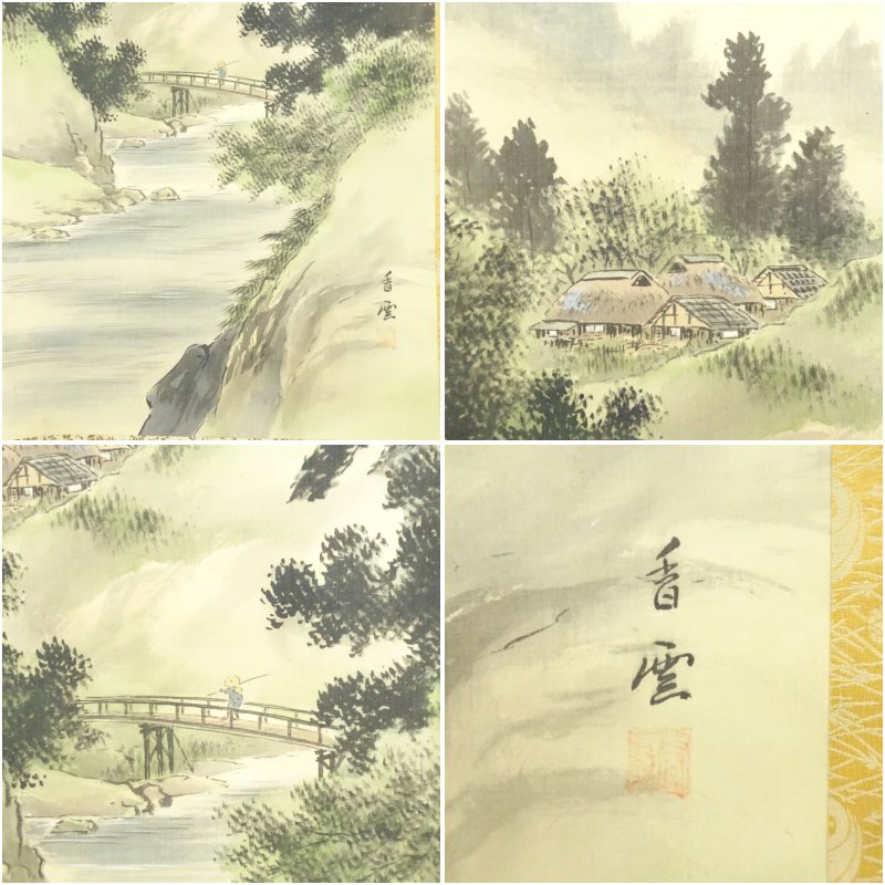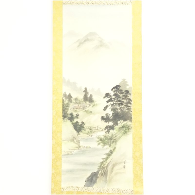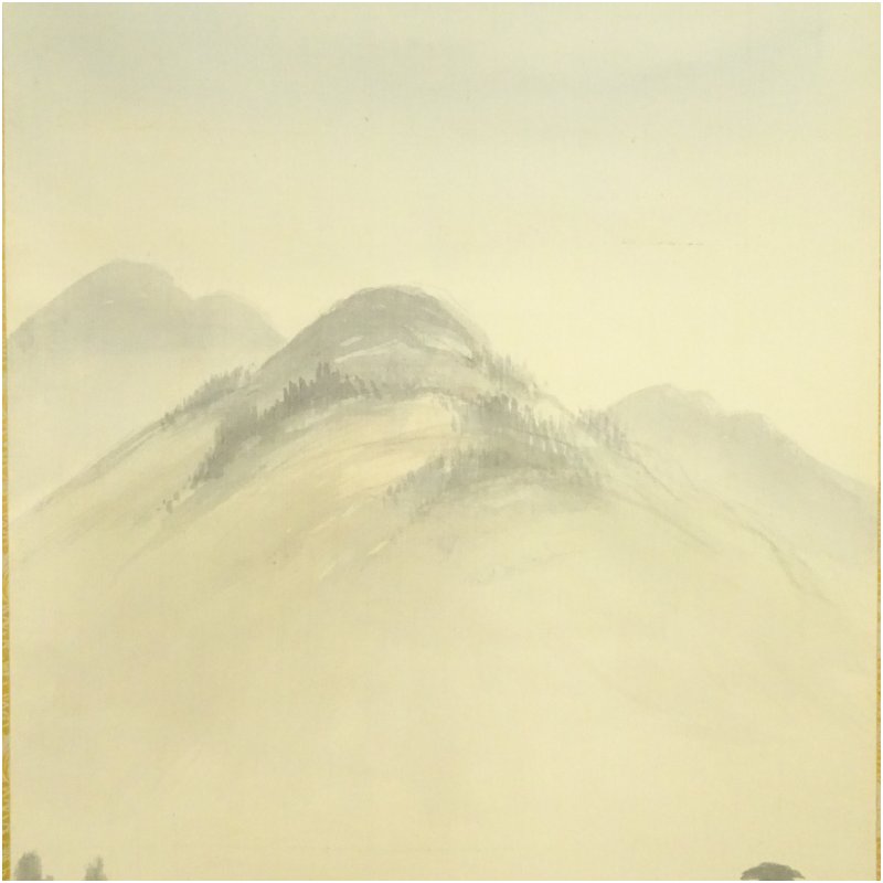香雲筆 淡色山水 肉筆絹本掛軸(紙箱)