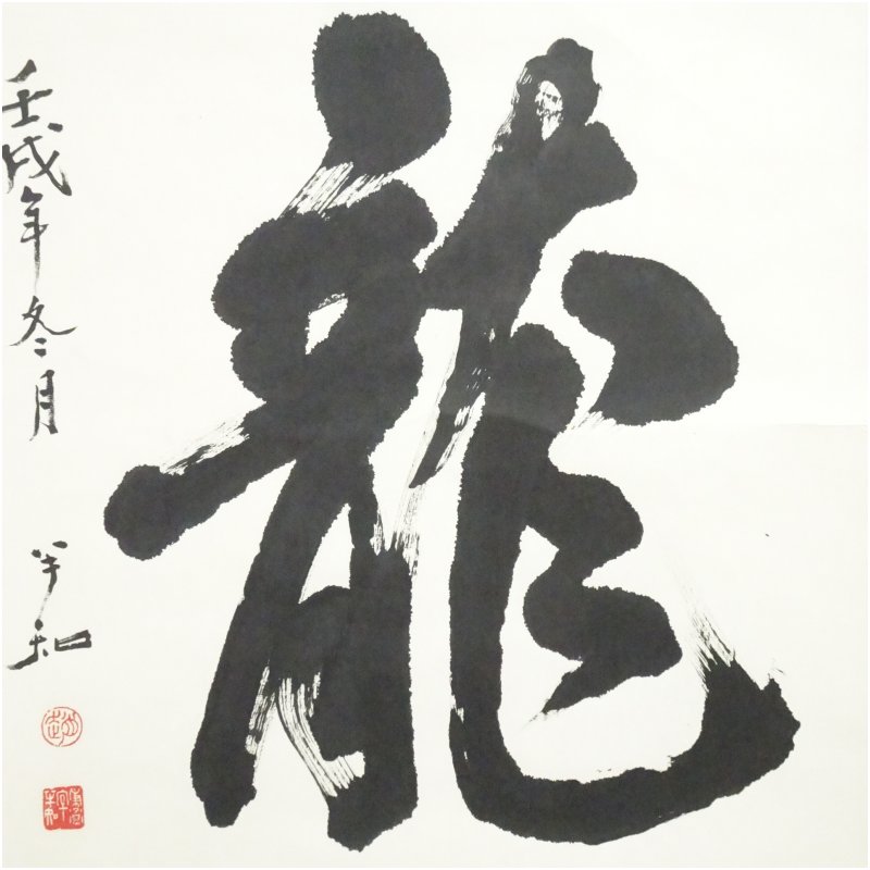 半和筆 「龍」一字 肉筆紙本掛軸(紙箱)