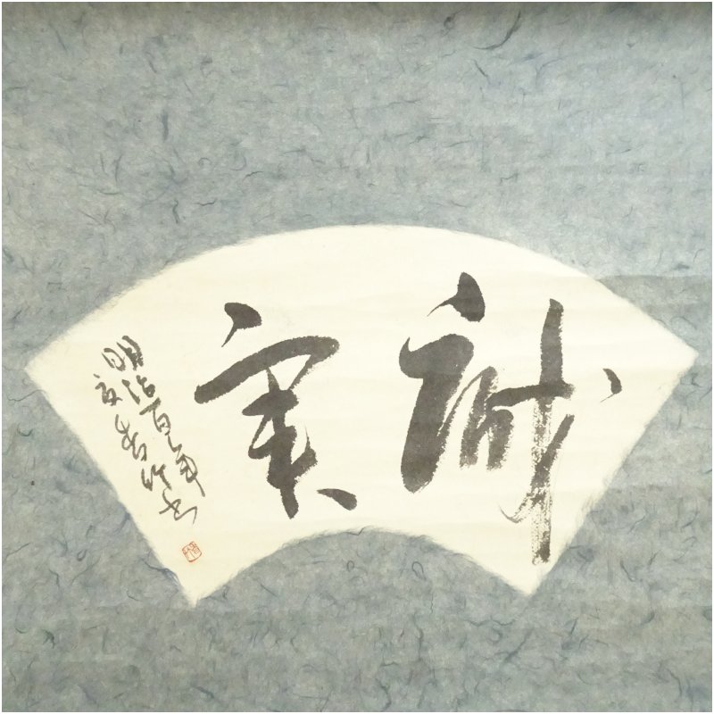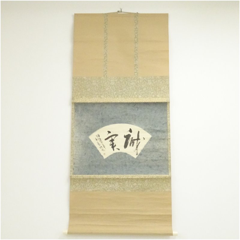 香竹筆 「誠実」扇面 肉筆紙本掛軸(紙箱)