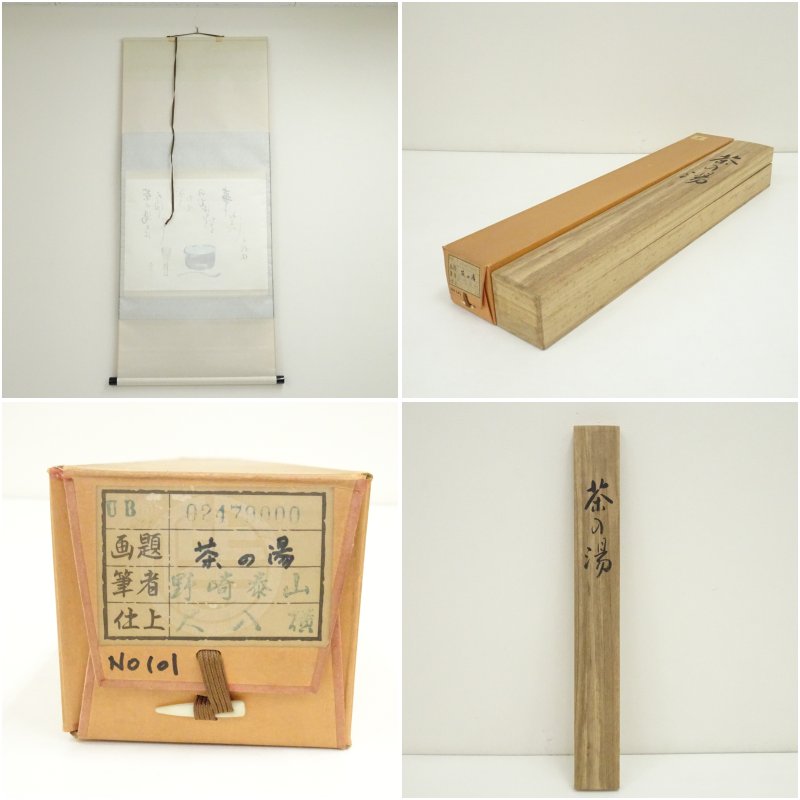 野崎泰山筆 茶の湯とは 画賛 肉筆紙本掛軸(共箱) [01-251127b-022a]