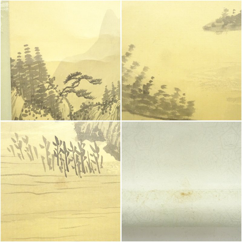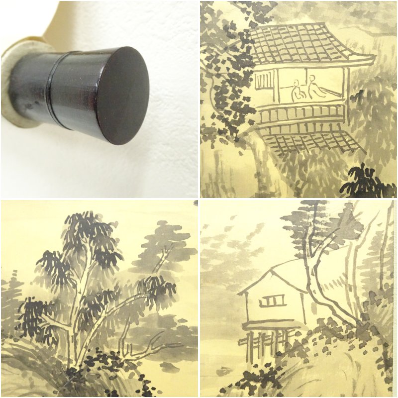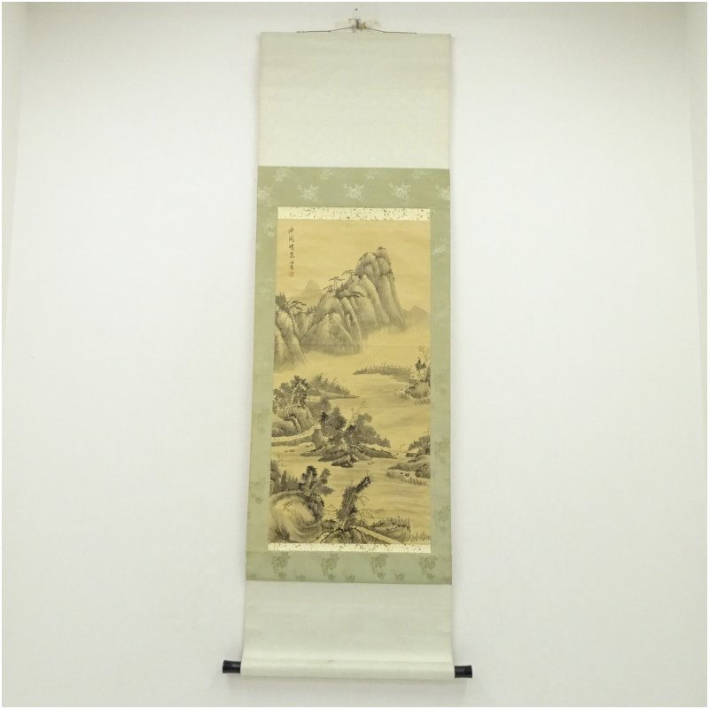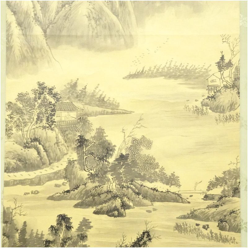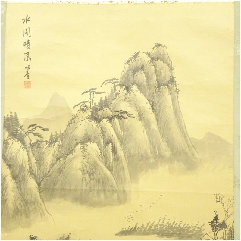 中国 味青筆 水閣晴嵐 肉筆絹本掛軸 [01-251127b-023a]