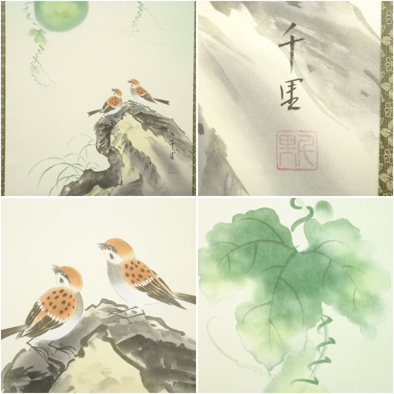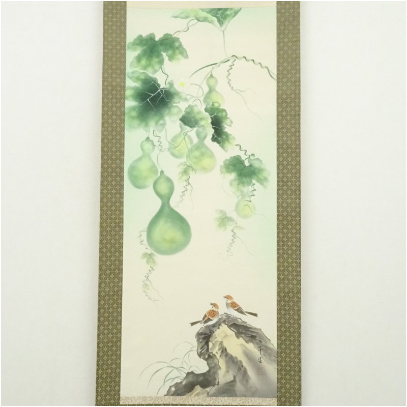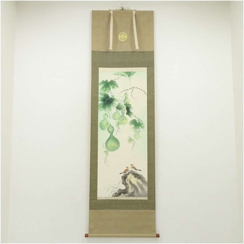 飯島千里筆 六瓢 肉筆絹本掛軸(共箱) [01-251127b-031a]