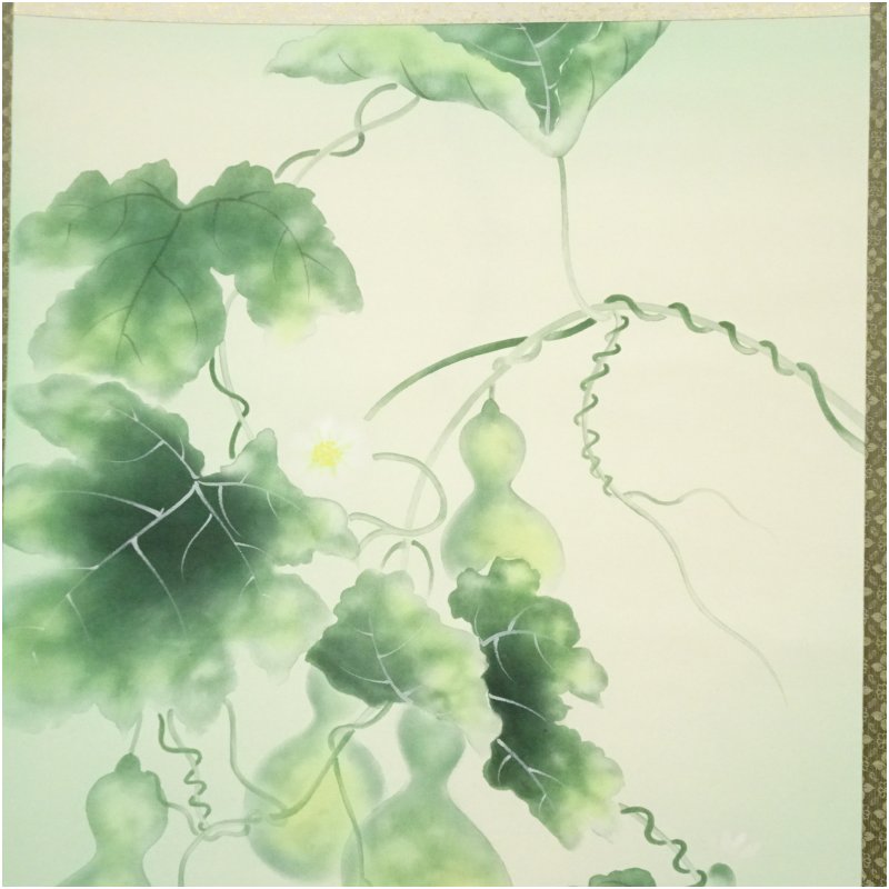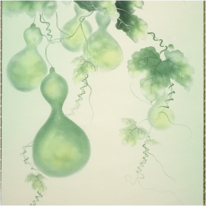 飯島千里筆 六瓢 肉筆絹本掛軸(共箱)