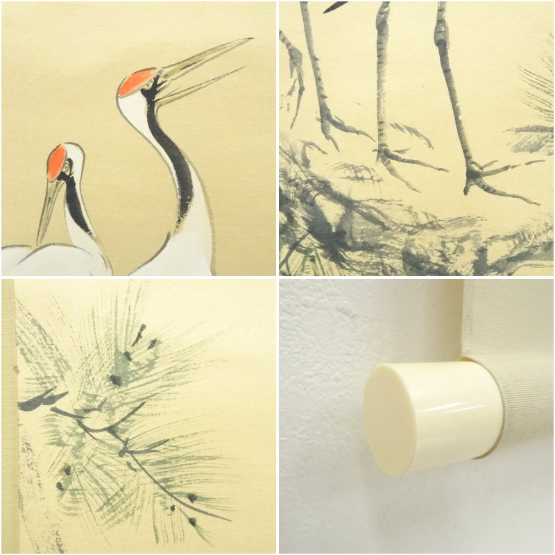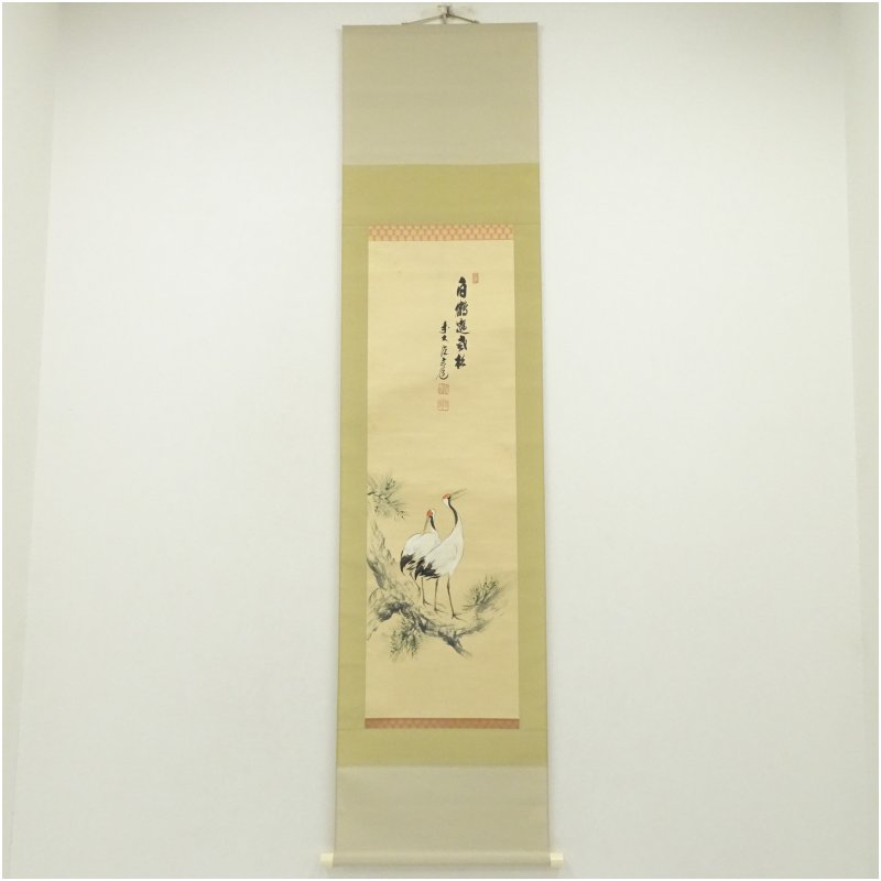 前大徳 須賀玄道筆 「白鶴遊老松」鶴画賛 肉筆紙本掛軸(共箱) [01-251127b-035a]