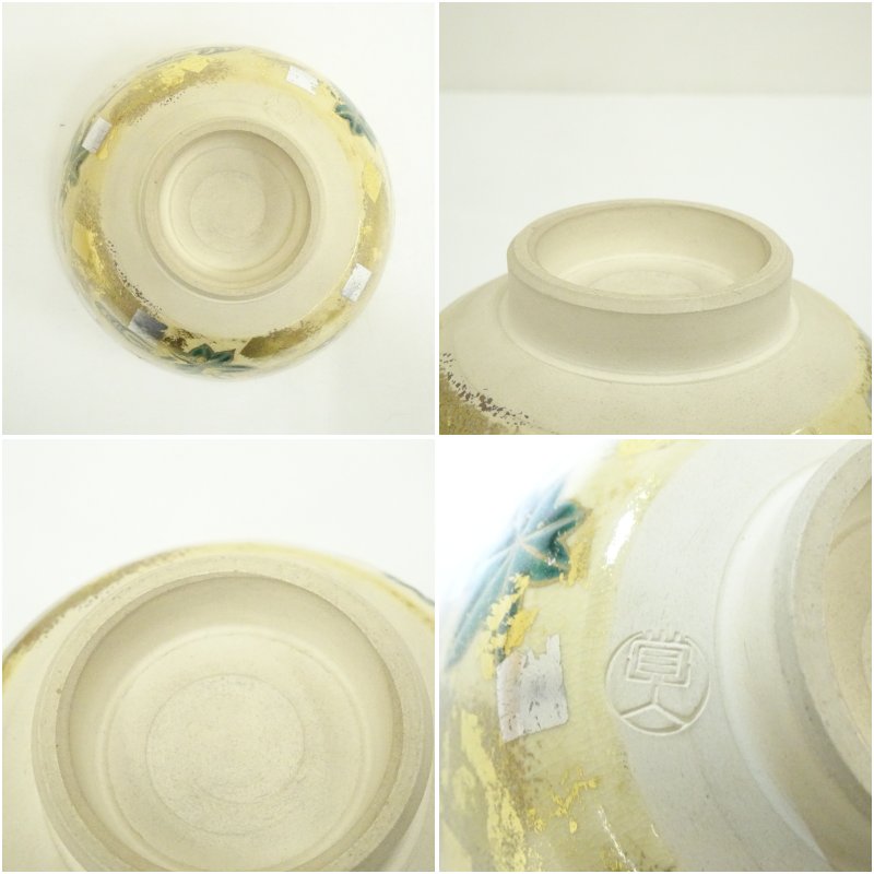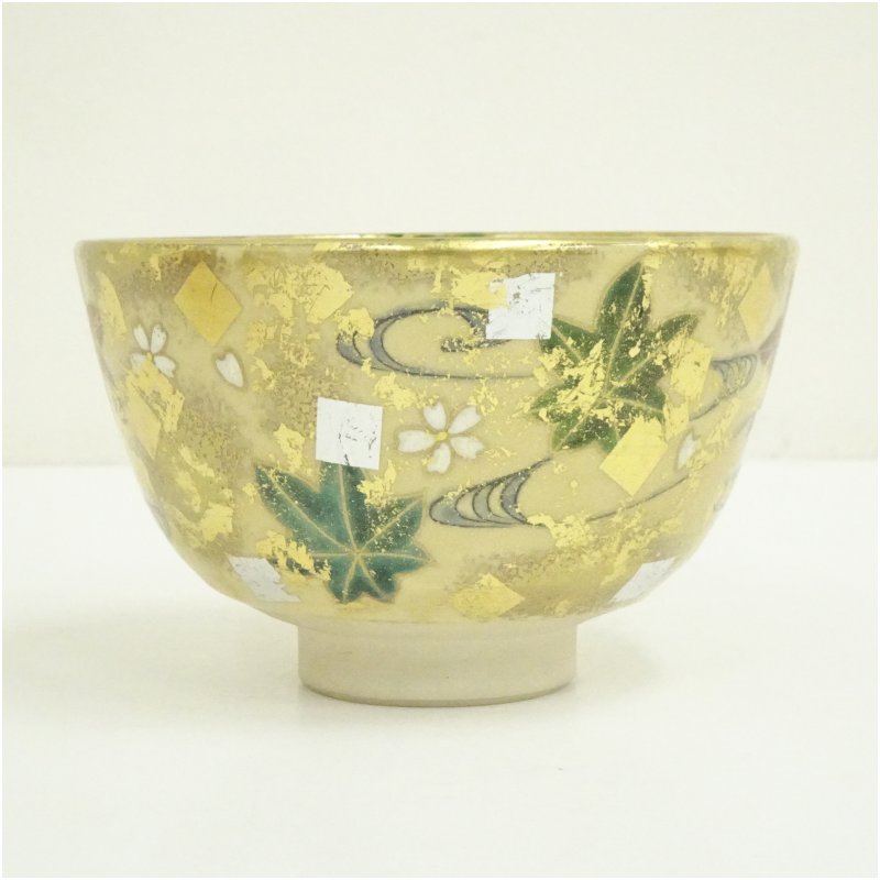 京焼 平井覚山造 金箔立田川茶碗(共箱) [13-251127b-053a]