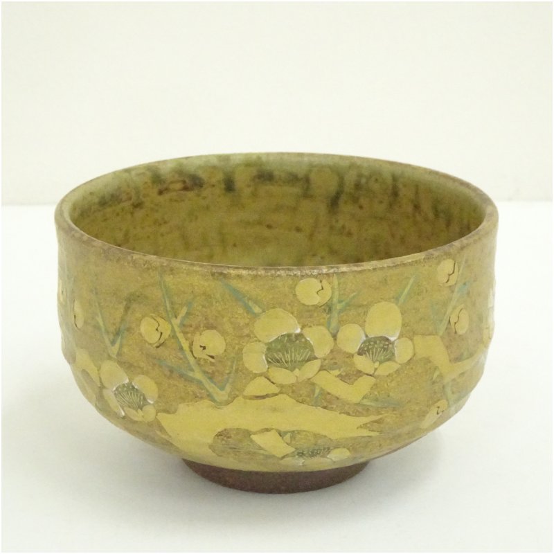 九谷焼 美山造 金彩老梅茶碗(共箱)