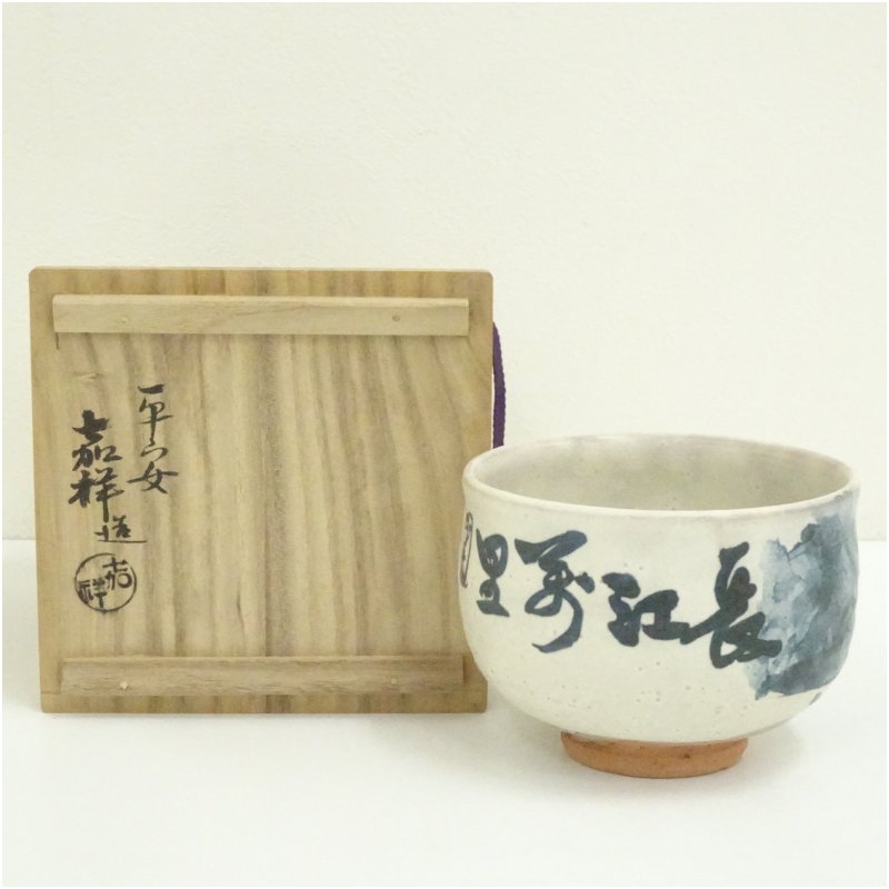 京焼 森岡嘉祥造 直原玉青筆 長江萬里図茶碗(共箱) [13-251127b-056a]