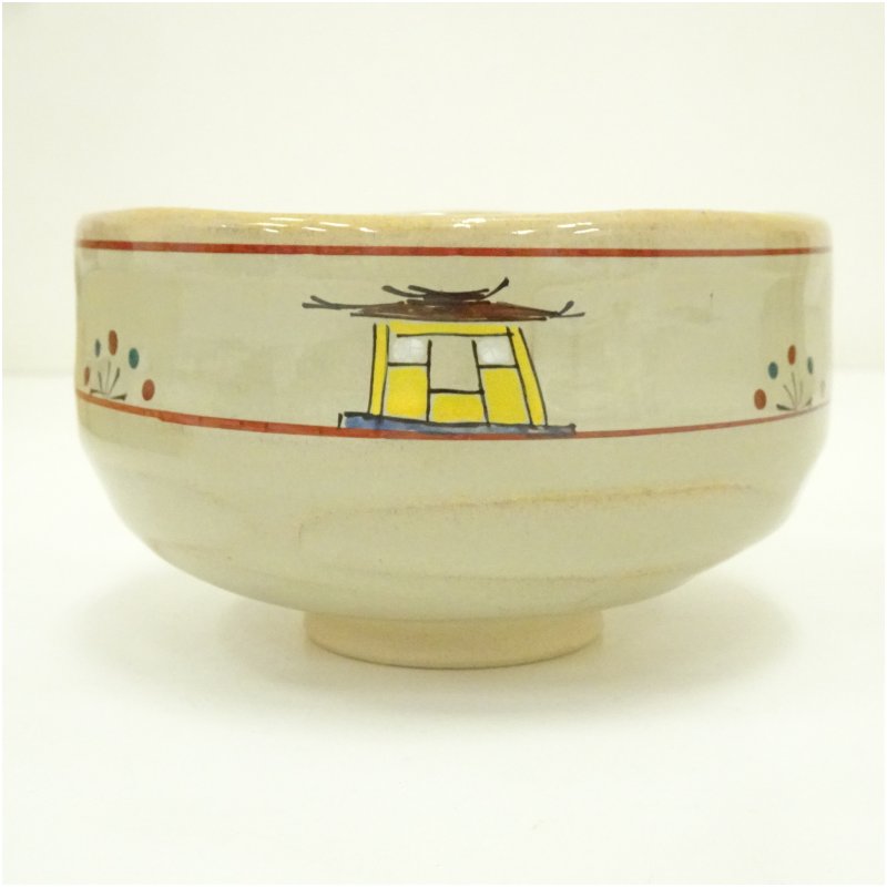 赤膚焼 大塩昭山造 奈良絵茶碗(共箱) [13-250617c-060a]
