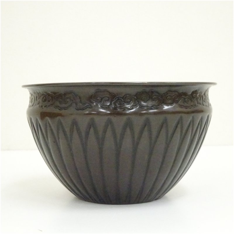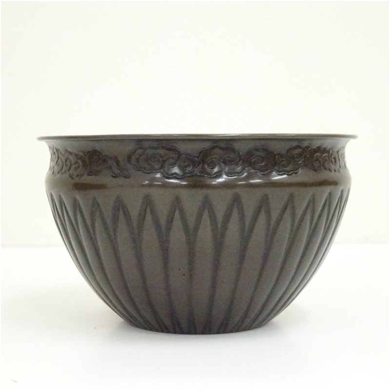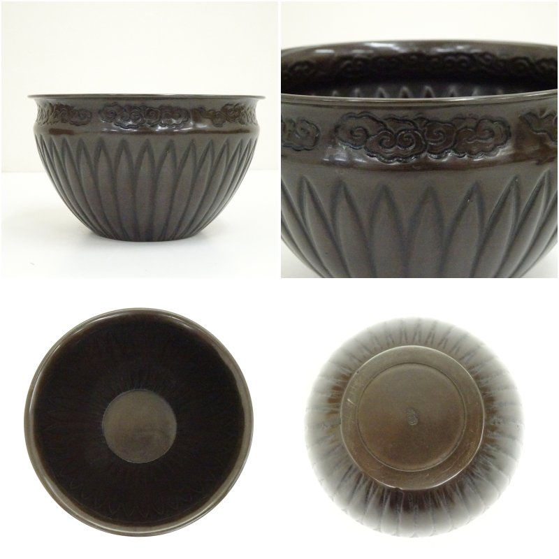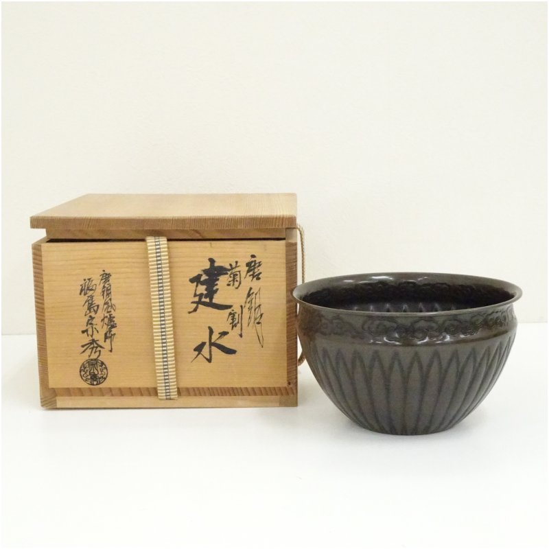 風炉師 福島宗秀造 唐銅菊割建水(共箱) [13-250618c-033a]
