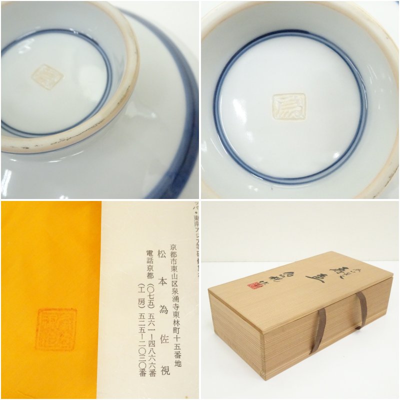 松本為佐視造 染付干支寅文寿盃2客(共箱)
