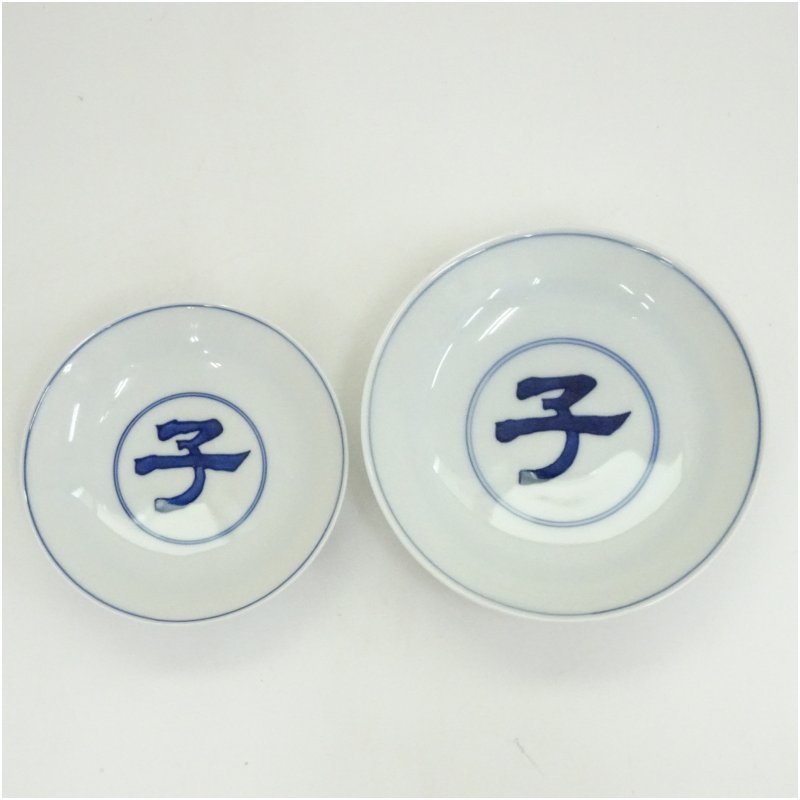 松本為佐視造 染付干支子文寿盃2客(共箱) [13-250618c-037a]
