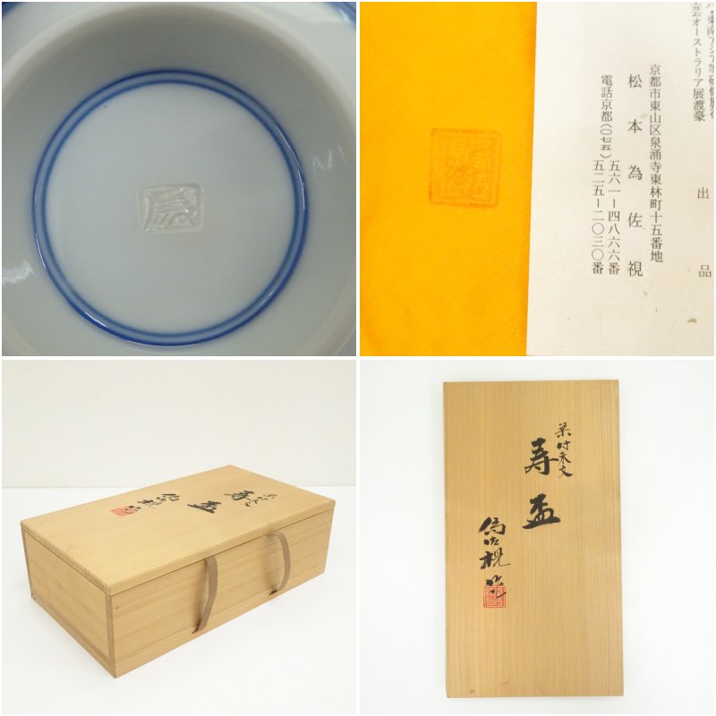 松本為佐視造 染付干支未文寿盃2客(共箱)