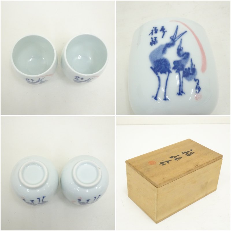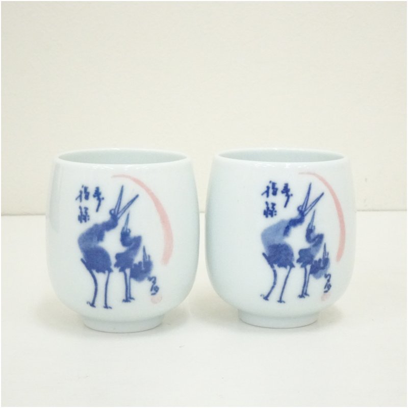清水公照絵付 福禄寿夫婦湯呑(共箱) [13-250618c-052a]