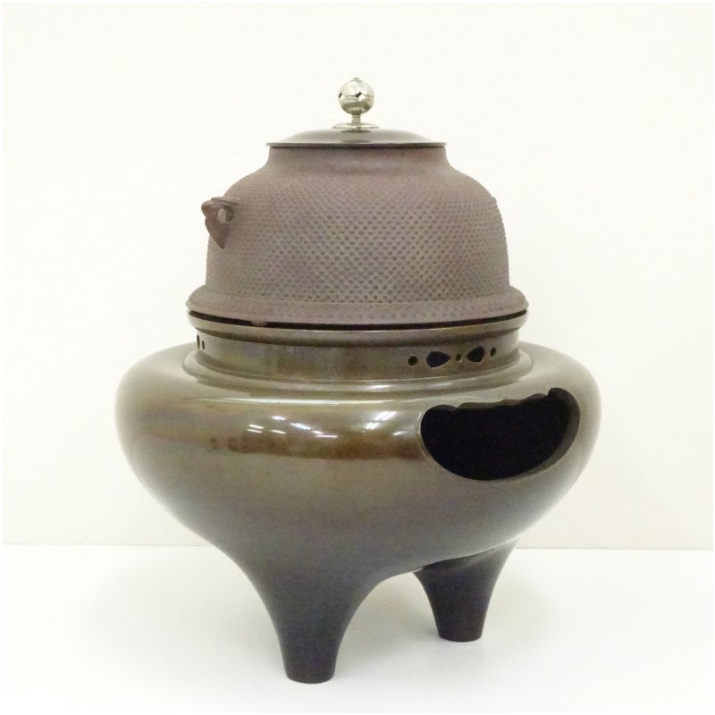 釜師 人間国宝 高橋敬典・風炉師 金谷浄雲造 唐銅朝鮮風炉・南鐐撮霰真形釜添(共箱)