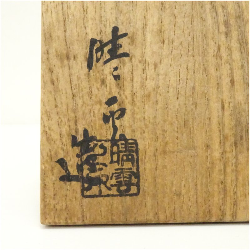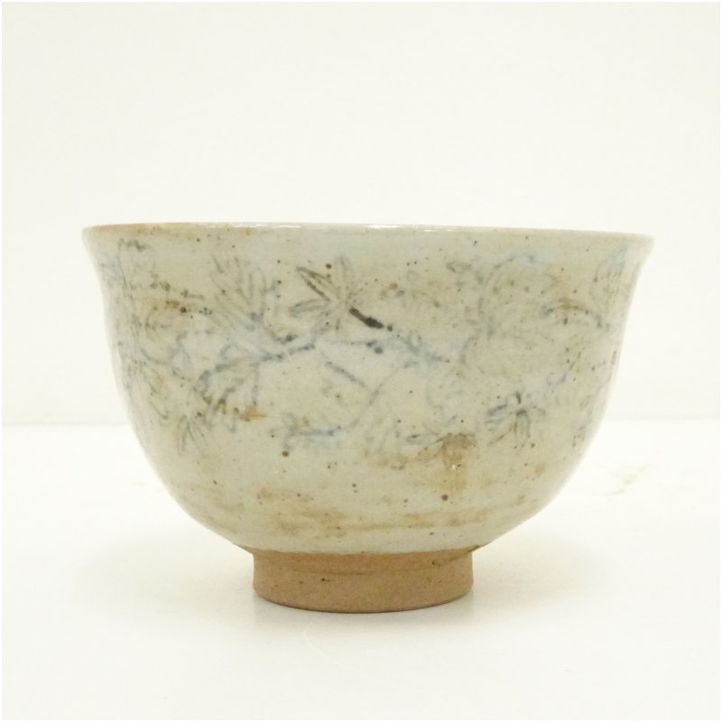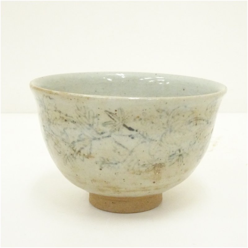嵐山 三楽造 灰釉草花絵茶碗(保護箱)